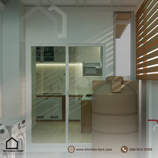 เเบบต่อเติมครัวหลังบ้าน เเบบ Noble โดย Kitchen Fort (เพิ่มโซนห้องสัตว์เลี้ยง)